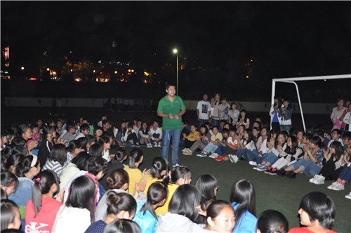 系团学会干部与2012级新生进行亲切互动,现场气氛十分活跃。团学干部们为新生和教官们带来了精心准备的各种形式的节目:深情款款的情歌对唱、活力四射的舞蹈、妙趣横生的相声表演等,赢得了新生们的阵阵掌声。另外新生们也推举出代表为大家表演节目,别具一格的表演形式令大家眼前一亮,滑稽幽默的肢体语言令大家不时开怀大笑。接着,教官们也参与了互动,他们为同学们展示了前扑、卧倒匍匐等训练科目,展现了军人的风采,同学们赞不绝口并报以热烈的掌声。