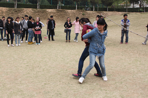 与传统运动会相比,本次运动会将竞技与娱乐相结合,着重同学们的参与和相互间的合作,比赛项目不仅可以展现团队合作精神,而且兼顾了趣味性和互动性。这不但是智慧和体力的角逐,也是团结协作能力的完美比拼,因此使得同学们积极参与。此次运动会分为三个项目,分别是“协同作战”、“穿越时空”和“袋鼠跳”,比赛过程中用时最短的那组取胜。团学会各部门成员为给自己的部门争得荣誉,都积极参与,激烈竞争。比赛现场掌声,笑声,喝彩声此起彼伏,场上场下互动交流,相互鼓励,整个比赛现场充满了欢快青春的气息。