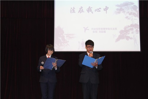 文法系主任兼郑南高校法学联合会名誉主席段丰乐老师和文法系行政秘书兼团委书记郑玲玲老师应邀出席了这次晚会,中原工学院法律服务社、中原工学院法协会、中原工学院信息商务学院、黄河科技学院以及我系部分同学参加了这次晚会。