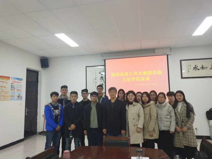 王教授首先为大家详细介绍了习近平总书记在十九大报告中对青年群体的期望。王老师指出,当代青年的成长和发展贯穿于“两个一百年”和社会主义现代化建设全过程,是最实际的参与者、建设者。大家一定要学到真本领,心中有家国天下,手里能妙笔生花,将自身成长与时代发展和社会发展紧密结合起来,自觉的投身于伟大建设之中。座谈期间,同学们聆听、记录并积极发言,不断向王老师咨询例如个人学习、学校生活、时事政治等相关问题,王老师耐心细致的对同学们的疑惑一一进行了解答,师生互动,传道授业,坐而论道,相得益彰。王老师慈祥朴实的话语,同学们真诚热烈的心情,把座谈推向了高潮,师生之间达到了高度的默契,赢得了同学们的阵阵掌声。