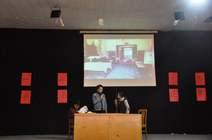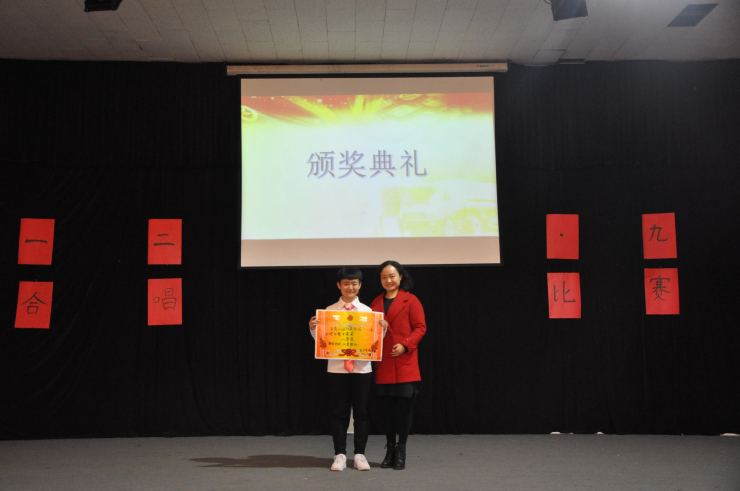 主持人介绍完比赛规则和流程后活动正式开始。首先,团委员工会文学中心带来的话剧表演《你好,历史》,带领大家进入那段血与火的历史,感受到振奋人心的力量。接着,各班合唱队上台展示了精心准备的合唱曲目,演唱时有的代表队加入了激动人心的朗诵,有的加入了催人泪下的表演,有的准备了精美的道具……一曲曲红歌唤起了大家慷慨报国的凌云壮志,博得了现场阵阵热烈的掌声。合唱环节结束,全体观众一起观看了振奋人心的跑男版《黄河大合唱》视频。经过激烈角逐,本次活动获得一等奖的是17学前教育二班代表队,获得二等奖的是17法学二班代表队,获得三等奖的是17汉语言一班代表队,获得最佳组织奖的是17新闻班代表队,获得最有默契奖的是17学一班代表队,获得最高人气奖的是17汉语言文学二班代表队,获得最佳台风奖的是17学前教育一班代表队。最后,全体起立,奏唱国歌。