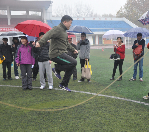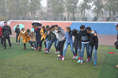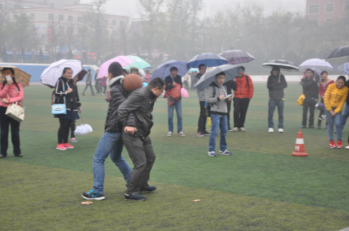 12月27日下午2:00时,我系参赛师生齐聚田径场。尽管寒风刺骨,细雨纷纷,我系师生依然冒着细雨,在田径场参加了此次健身运动会,用高昂的热情点燃了现场热闹的气氛。比赛共分师生组和教工组,全场比赛共六个环节,分别为袋鼠跳接力、趣味接力、骑士投镖、跳大绳、心心相印、千足蜈蚣。首先比赛的是袋鼠跳接力,同学和老师幽默滑稽的表现逗得在旁的同学们捧腹大笑;接着是趣味接力,纷繁复杂的运动会程序让同学们措手不及,引得观众哈哈大笑。最令人激动的是师生之间的心心相印,两组队员之间的各种各样的配合使得全场比赛增添了活跃的气氛和比赛的乐趣。此次秋季健身运动会在一片欢声笑语中结束。