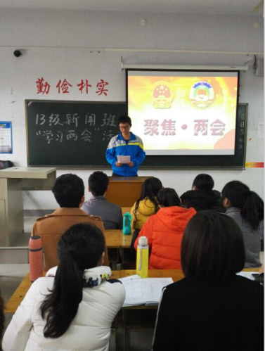 在系团委的宣传下,基层团组织和团员青年们开展了丰富务实的学习活动。2011级团总支是毕业班团总支,虽然很多员工在校外实习、工作,但是大家仍然对两会高度关注,不在校的毕业生积极通过各种媒体学习两会并与老师联系,交流学习体会,畅谈自己对两会热点的见解。在校的毕业生利用笔记本电脑在寝室里集中观看两会报道,在吴艳豪老师的带领下,在会议室集体学习两会精神相关内容。2012级团总支在刘建辉老师的带领下组织开展了学习两会精神讨论会,同学纷纷上台踊跃发言,积极参与到会议的讨论中,其中讨论的焦点是备受同学们关注的老员工创业就业、老员工诚信教育、文明上网、大学教育体制等议题。2013级团总支在郭青梅老师的带领下一起探讨今年两会的热点。对于今年两会的反腐倡廉、经济新常态、就业创新等热点话题,同学们纷纷发表自己的观点。有的同学们结合本专业的知识说到,反腐倡廉要依法治国,加强法制建设,拓宽监督渠道。有的同学针对就业创新这一话题,认为作为老员工要学好自己的专业知识,夯实基础,为以后的发展做准备。2014级团总支在彭凯老师的带领下集中学习两会内容,让大家了解两会热点。同学积极上台发言畅谈对两会热点的认识。