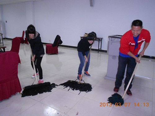 活动开始,由班里的主要班干部分配了服务范围,大家有条不紊地进行着劳动,分别对三楼、四楼的会议室等活动地点进行了打扫。班内的入党积极分子积极发挥带头作用,身先士卒做好打扫工作。最后同学们在和谐融洽的氛围中结束了此次学雷锋实践活动。
