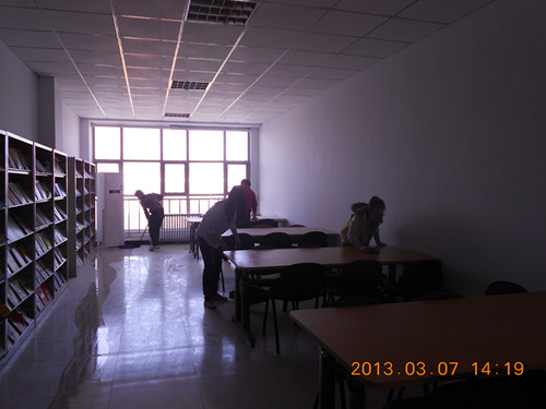 为学习雷锋精神,在校园师生中树立志愿服务的良好精神风貌,3月7日下午,文法系12级法学专业同学在辅导员彭凯老师的组织下进行了志愿打扫博新楼活动。