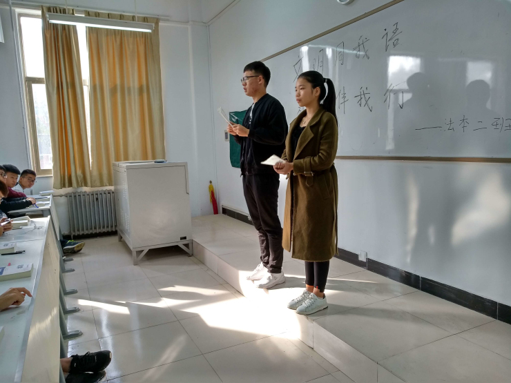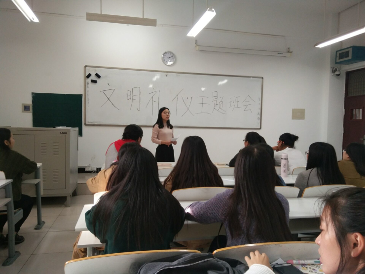 为了营造积极向上、文明礼貌、舒适优雅的校园文化环境,太阳集团tyc5392017级各班在辅导员王松洁、王卫丽老师的组织下,于2017年11月10日在道镕楼教室召开“文明礼貌从问候做起”主题班会。