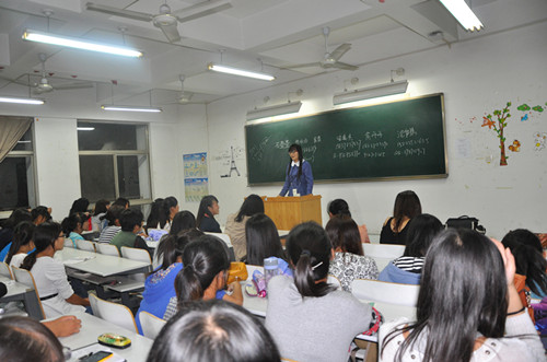 在一片掌声中,交流会拉开了序幕。首先,郭青梅老师从生活和学习两个方面谈了一下自己的经验。在生活上,郭老师非常关心同学们的身体以及同学们对老员工活的适应情况,并反复嘱咐安全一定要放在第一位。在学习上,郭老师首先对文学专业的相关问题进行了阐释,并对以后的就业情况也进行了详细地说明。随后,11级候倩、杨秋雨、石莹莹、孙鑫鑫,12级沈佳慧、房丹丹、安奥杰一一上台,以自身的经历为新生们提供了很多学习和处理困难的方法,并对新生面对工作、生活、学习冲突时谈了一些自己的处理解决方法。同学们听完之后,都表示收获良多。