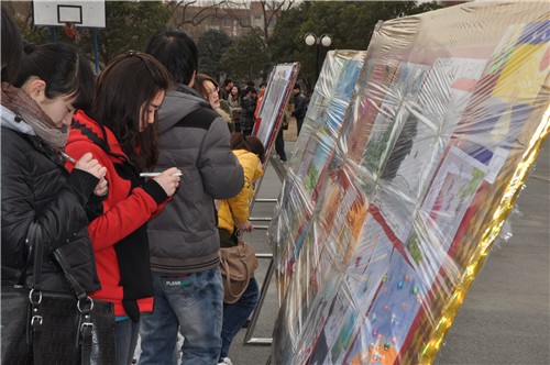 本次海报设计大赛征集的作品来自全系各年级各班及系团委员工会各部门。经过宣传部的初次筛选,共展出“爱护地球”、“点一盏灯”、“行动,改变未来”、“强身健体”等近20幅作品。我系工作人员细心周到的为来往驻足的同学悉心介绍各幅参赛作品,热心的同学一边观看,一边为自己认为精彩的作品投票。经过近三个小时的展出,活动圆满结束。