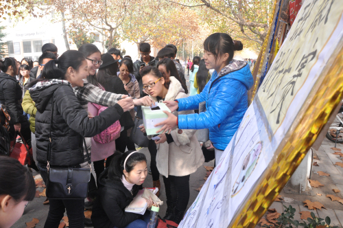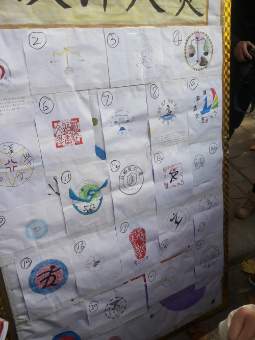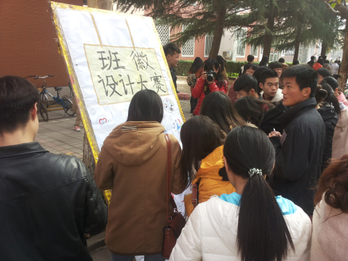 中午放学后,同学们来到金控中心门口热烈讨论着参赛作品色彩的搭配、形状、寓意等。本次比赛的参赛作品既突出了文法系的特点又很好的结合了本专业的特点。如法班的作品主要是以天平为主图,象征着公平与正义;汉本班设计的班徽则充分发挥中华文字的魅力,使文字人性化、让文字舞动起来;新闻班设计的班徽则突出视觉的效果。面对众多优秀的作品,同学们认真选出自己支持的作品并投出宝贵的一票。同时,此次活动也引来了公司其他系同学们的关注并积极参与投票活动。最后,宣传部的所有工作人员进行合影留念。