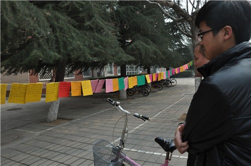 雷锋日记记录了雷锋同志生前学习、工作和生活的基本情况,日记中平实朴素而简练生动的语言,闪耀着共产主义思想光辉,充满着理性的思考,反映了雷锋同志的先进思想,激励着人们奋进。文法系风纪部与文学中心别出心裁,利用卡片摘抄雷锋日记,在金控中心前进行展示。摘抄雷锋日记的卡片悬挂在金控中心门前,如翩翩彩蝶,吸引了众多师生驻足观看,活动引起了热烈反响。通过摘抄、阅读雷锋同志的日记使同学们深刻地感受到雷锋全心全意为人民服务,为了人民的事业无私奉献的伟大精神。