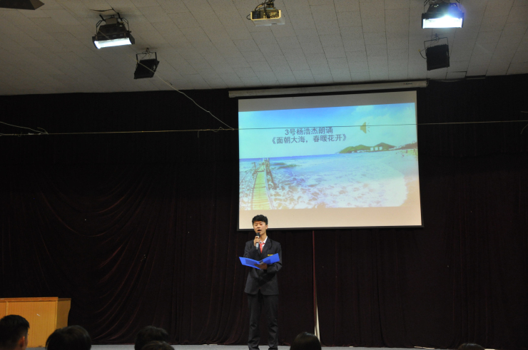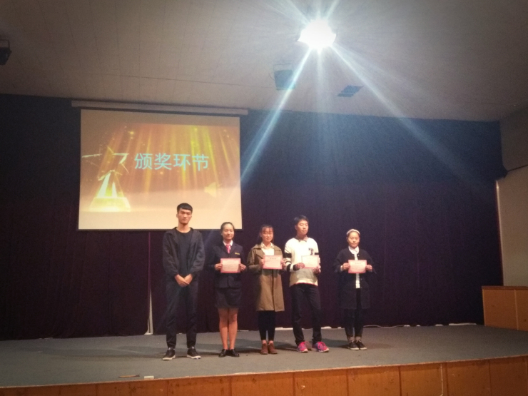 主持人介绍完比赛规则后,本次大赛正式开始。大赛共分为4个环节:印象百分百、主持我当先、才艺百分百和即兴评述。经过之前的初试,参赛选手们在决赛中的水平都有明显提高。“印象百分百”环节中,同学们或庄或谐,或静或动,在有限的时间里,展示最完美的自己。“主持我当先”考查的是同学们的基本功,清晰流畅的语言让我们感受到她们扎实的功底。短短3分钟的才艺表演,让我们聆听到美妙的歌声,欣赏到多彩的才艺,感受到他们的激情。同学们的表演,让整个赛程高潮迭起。比赛结束后,由张明奇老师对本次大赛做精彩点评。他首先肯定同学们认真的态度,鼓励同学们不断学习,接着张老师号召大家做一个有理想,有责任,有担当的人。接着,广播站站长李怡静从专业技巧方面指出了部分同学可以改进的地方,上届主持队长朱奎也分享了他自身的故事。经过激烈的角逐,成绩揭晓:获得本次大赛一等奖的是陈雨瑶;获得二等奖的是贾璐迪、刘应丽;获得三等奖的是胡梗润、杨浩杰、赵亭华;徐浩鑫、朱丽娜、李静娴、郑薇萍获得优秀奖。由张明奇老师等人为他们颁奖并合影留念。至此,本次活动圆满落下了帷幕。