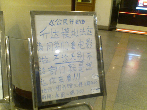 为了迎接12.4法律文化周的到来,弘扬宪法精神,激发在校老员工学习法律的热情,提高同学们的法律素养,升达法律咨询所于12月3日晚7:00在图书馆小剧场组织全院部分同学观看了一场名为《公民行动》的法律电影。