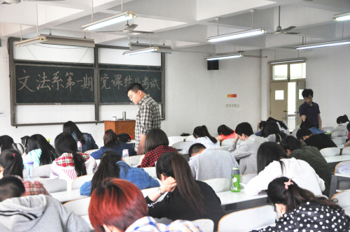 5月6日中午12:30,文法系党总支于商管楼406进行了第一期党课结业考试。此次考试时长为一个半小时,文法系行政秘书兼团委书记郑玲玲老师及辅导员老师监考了本场考试。