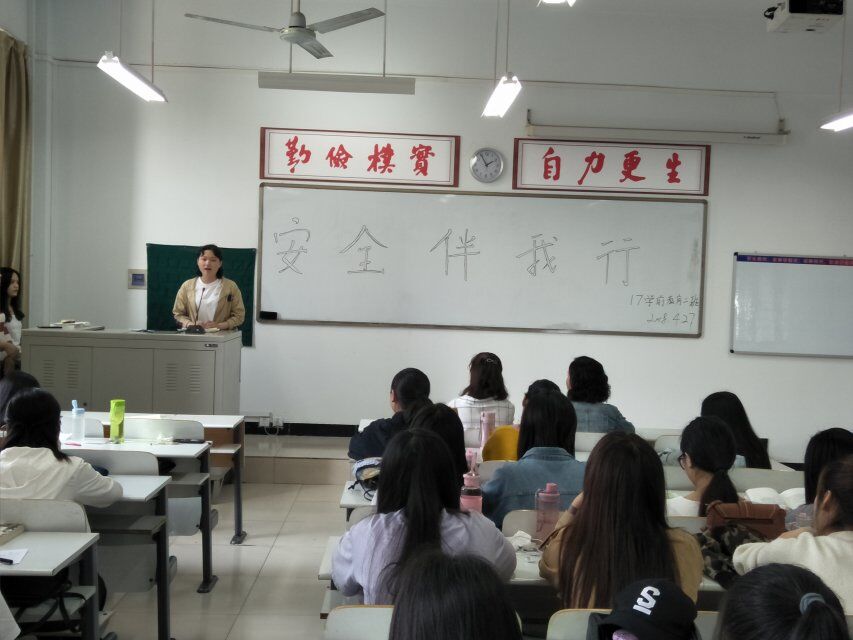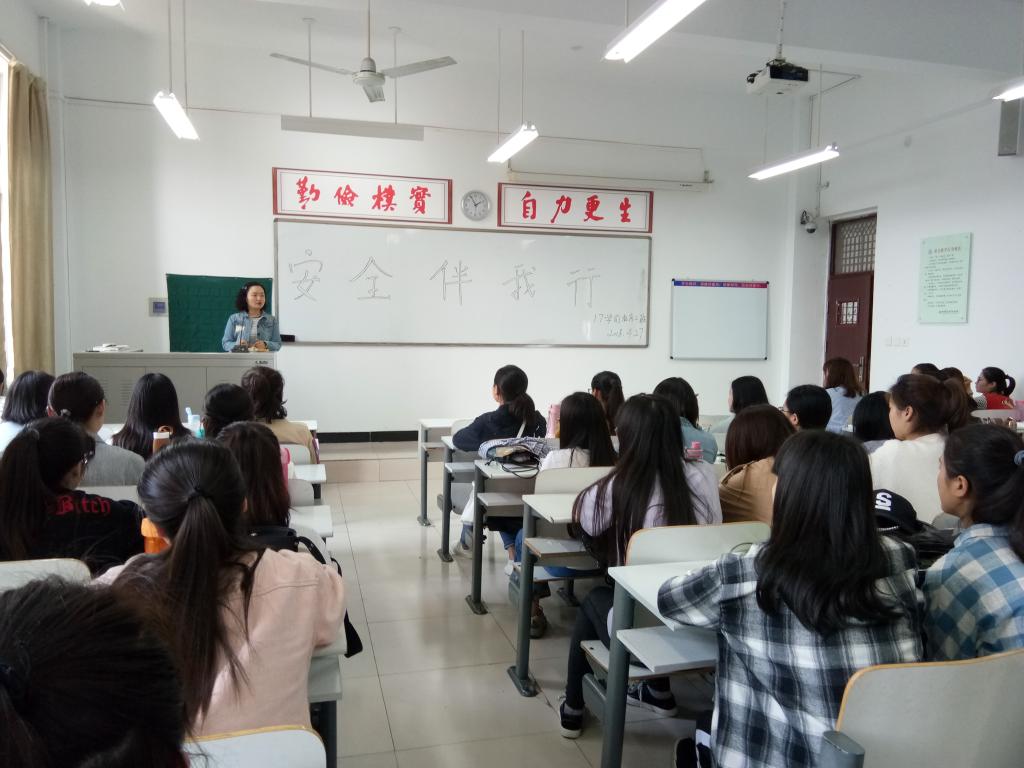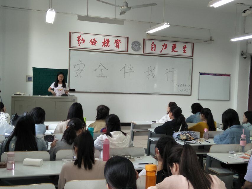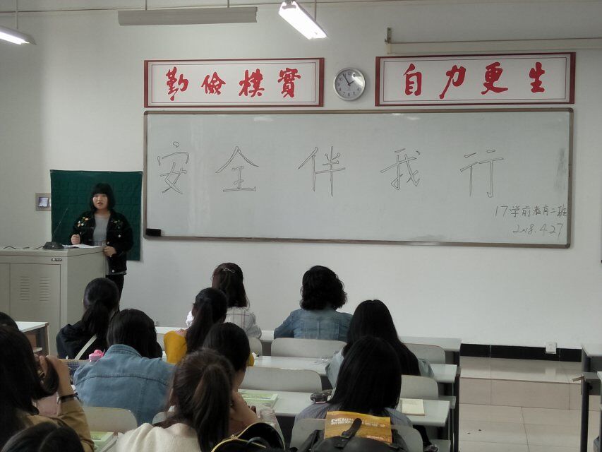 主持人简单介绍了安全的重要性后,由同学们自由发言,郭明明同学从宿舍安全说起,结合切身经历,告诫同学们一定要从自身做起,关注细节,保护好自身安全;石孟欣同学从“安全伴我行”的主题意义说起,深刻剖析了安全在我们生活中的重要作用,呼吁同学们一定要重视身边的安全隐患,防患于未然;白宇敏同学则从自身经历出发,用一系列的事实告诫同学们要随时防范校外免费送小礼品的安全隐患。然后,辅导员王松洁老师向同学们介绍了五一假期期间应注意的相关安全问题,如出去游玩的同学要和家人同学保持联系,在宿舍的同学要注意防范陌生人进宿舍等。