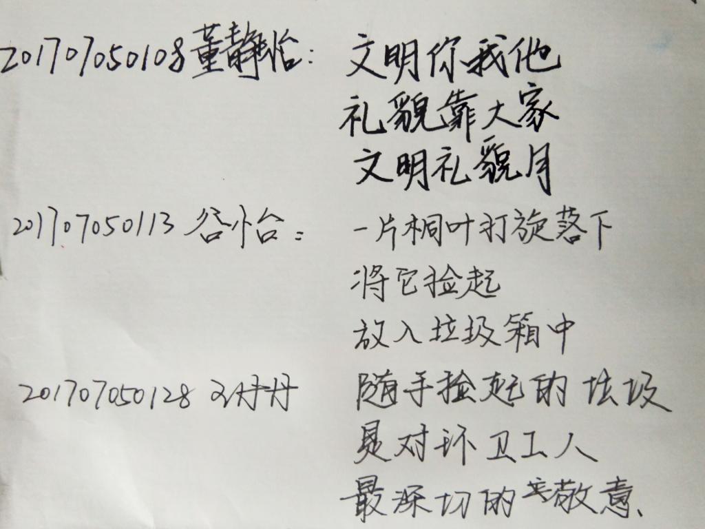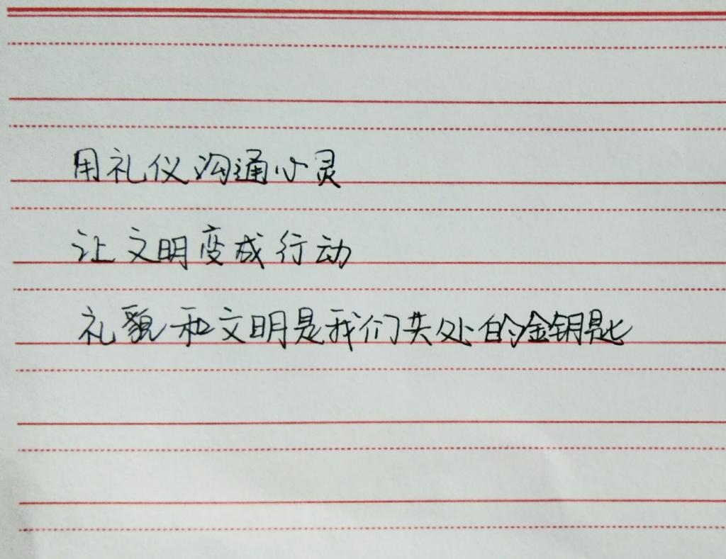 文明礼仪是中华民族的传统美德,更应成为员工养成教育的重要内容和日常行为的基本要求,通过此次文明礼貌月活动,不仅加强了同学们对文明礼貌的认知,也激励同学们在日常行动中进一步践行文明礼貌精神。(供稿人:17新闻班郭文聪)