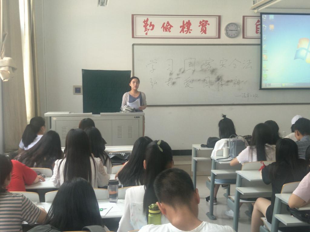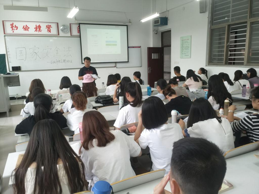 在接下来的几天里,各班辅导员积极深入各班教室进行国家安全方面的教育,同时要求班长带领大家认真学习《国家安全法》和《反间谍法》,之后辅导员针对个别问题进行详细讲解。辅导员们告诫同学们,随着现代通信技术的发展,国家安全面临极大的机遇和挑战,我国整体国力的提升让别有用心的势力感到恐慌,他们千方百计的想要窃取我国军事机密和掀起我国内乱,同学们要有明辨是非的能力,用科学的眼光判断问题,用知识武装头脑,为国家安全作出自己的贡献。