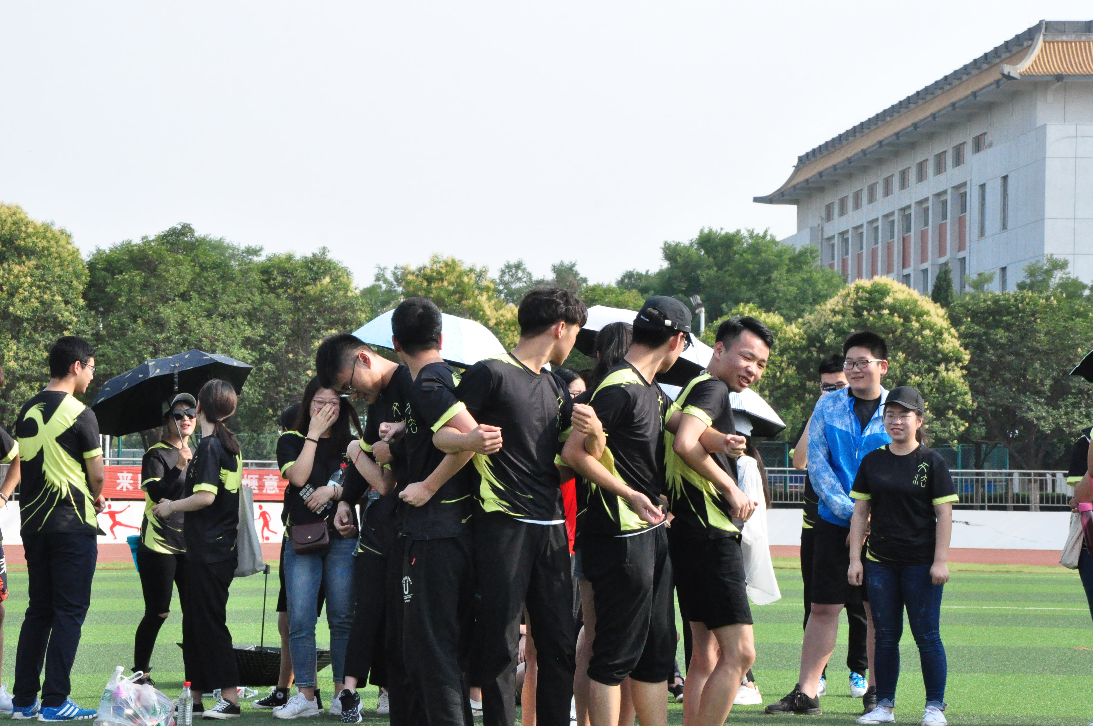 接着,同学们按照活动方案和规则分组进行,在热身活动后到指定的比赛地点,为今天的活动进行准备工作。火辣的太阳并没有吓退同学们,反而激发了同学们高涨的热情。