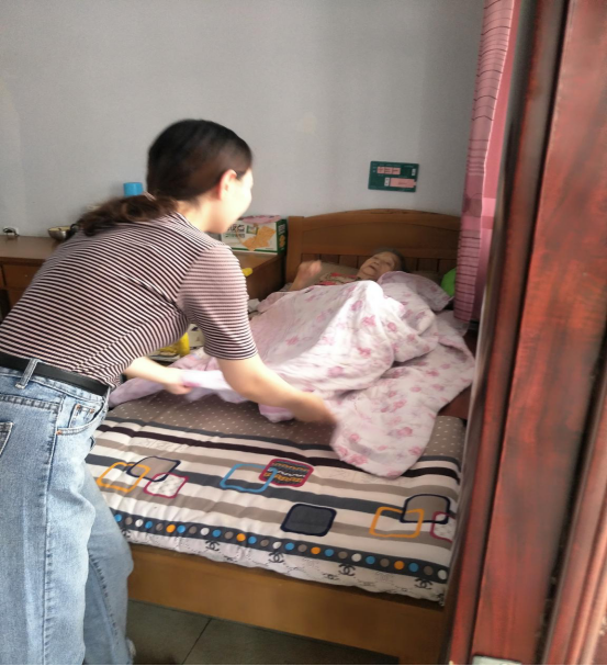 在敬老院,我们看望了这里已不能自由活动的老爷爷,并询问在这里的生活是否舒心;在走廊参观时一位老奶奶叫住我们,她觉得有点冷,想让我们帮她把被子盖上,我们一个小小的举动,换来了老奶奶的开心与幸福,之后我们与老奶奶一起交谈甚欢。实践活动期间,我们每天按时来到敬老院为老人们做事,陪他们聊天,听他们讲他们的人生经历。