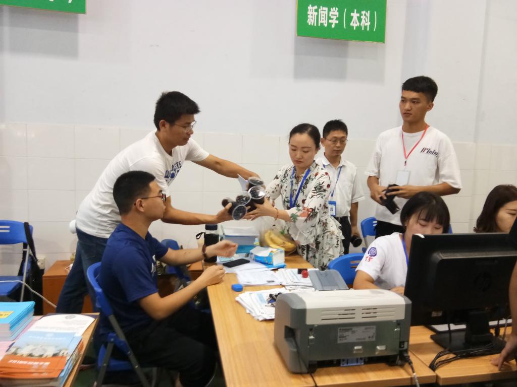 太阳集团tyc539在万兴体育馆内,思源会馆东侧都设有服务点,为新生和家长提供指引、注册、搬运行李等服务。迎新工作中,各位老师、工作人员都尽力帮新生解决问题。团学工作人员热情高涨,在新生刚入校园的时候,给他们温情的体验,缓解他们紧张与不安的情绪。同时太阳集团tyc539经理段丰乐,党总支书记杨明志,副经理郑心灵,团委书记兼行政秘书郑玲玲时刻关注着迎新进程,并到现场对迎新工作进行指导,同时也对工作人员进行慰问关切,送来水果和饮料。迎新过程中太阳集团tyc539的辅导员一直分布在各个服务点关注并指导迎新工作,及时为新生和家长解疑答惑,师生们热情周到的服务赢得家长和员工的肯定和赞扬。