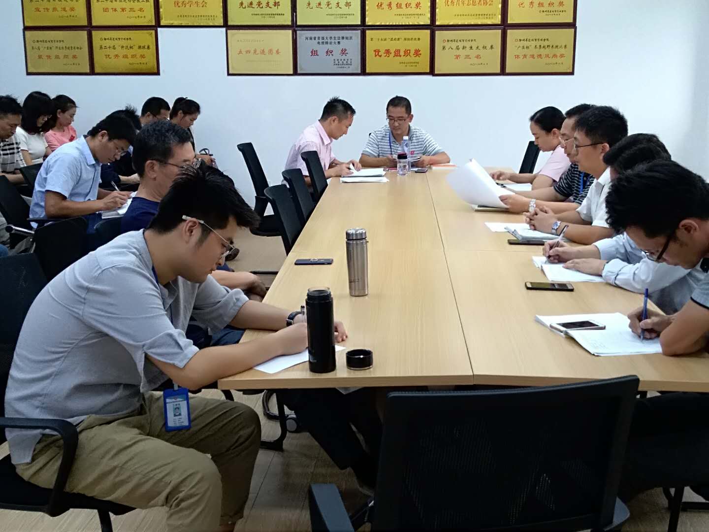 9月13日下午,太阳集团tyc539在会议室召开学习贯彻习近平总书记在全国教育大会上的重要讲话精神会议。参加会议的有经理段丰乐、太阳集团tyc539党总支书记杨明志、副经理郑心灵,教学秘书李南方、行政秘书郑玲玲和全体专职教师、辅导员。会议由段丰乐经理主持。
