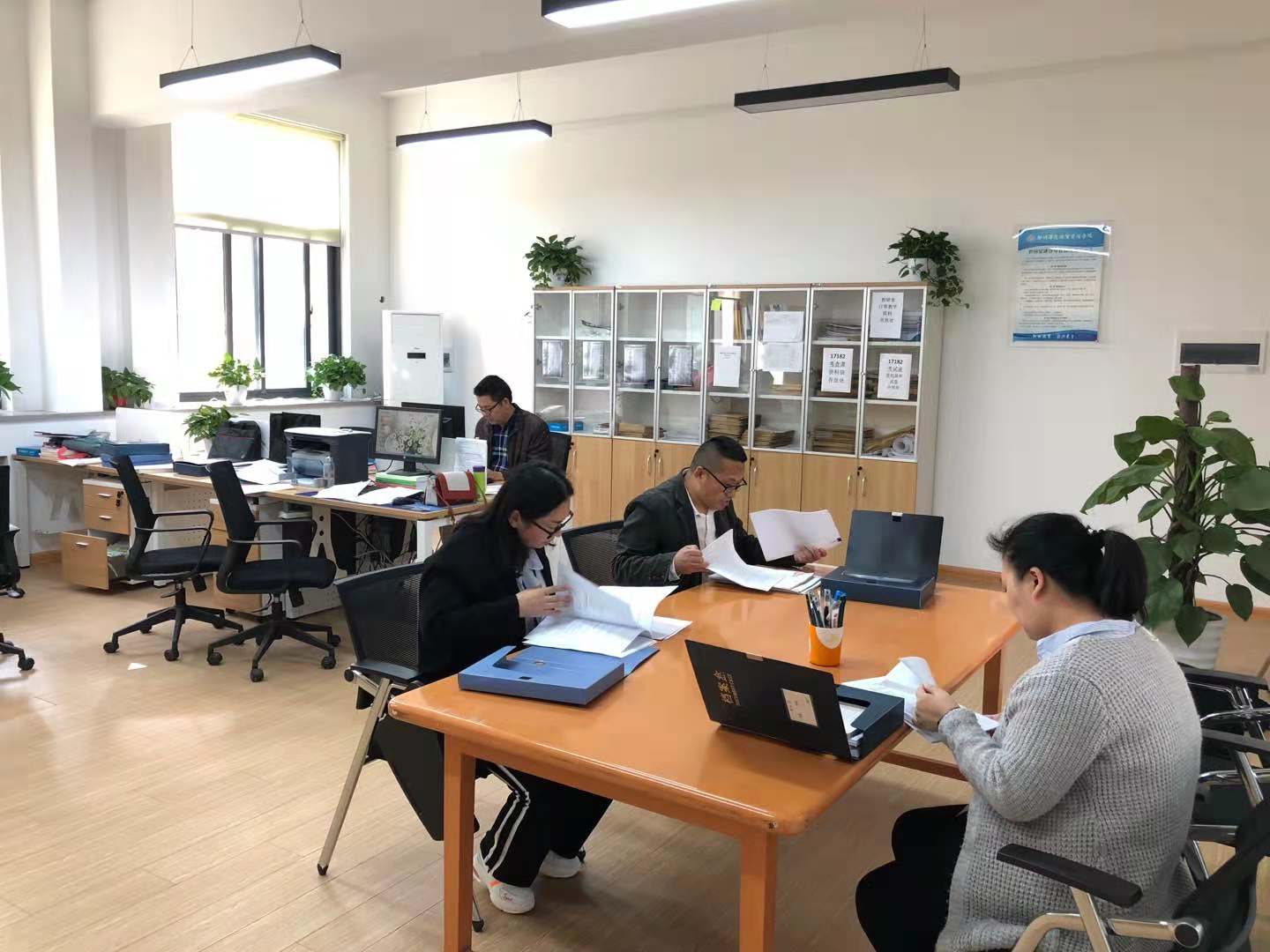 最后,针对教务处关于期中教学的工作布置,教师们在教研室认真进行了教学资料的互查工作,大家一丝不苟,通过互查资料,互相学习,发现问题与不足及时反馈,遇到优秀的教案讲稿等教学资料大家一起学习,老师们都表示,通过互查工作,发现了自己在教学中的不足,也学习到了同行的优秀教学经验,会在今后的教学中更上一层楼。