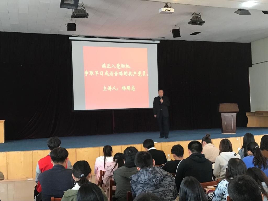 杨书记首先解释了“什么是社会主义,什么是共产主义”的基本问题,并且从中国近代的历史讲起,解释了中国为什么而又是如何选择了社会主义。他由此切入,为同学们指出入党的真正的目的、动机是什么以及作为员工的我们要怎么做。随后杨书记为同学们讲述了党的性质、党的纲领以及党的基本路线,要求大家关心时政,深入学习贯彻习近平新时代中国特色社会主义思想和党的十九大精神等。
