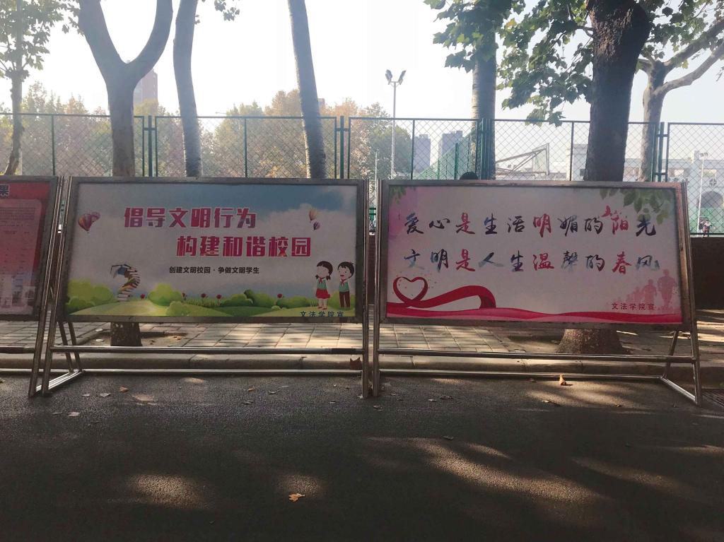 10月29日,太阳集团tyc539制作两块文明标语展板摆放于主干道,宣传教育全体员工“讲文明,树新风”。