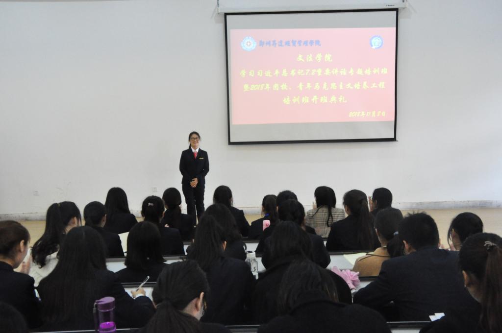 典礼第一环节,全体起立,奏唱共青团团歌,接着由学院团委副书记张明奇老师讲话,张老师以“一个人的思想动力有多大,他就有多大的成就”来说明团课的重要性。团校班主任闫毅啸宣读课程安排和团课纪律。接着是竞选团课班长与团支书环节,大家踊跃参与,勇担重任。最后,由18级法本二班徐苏予担任本期团课班长,18级新闻班马瑞颖担任团支书。此次业余团课开学典礼圆满结束。