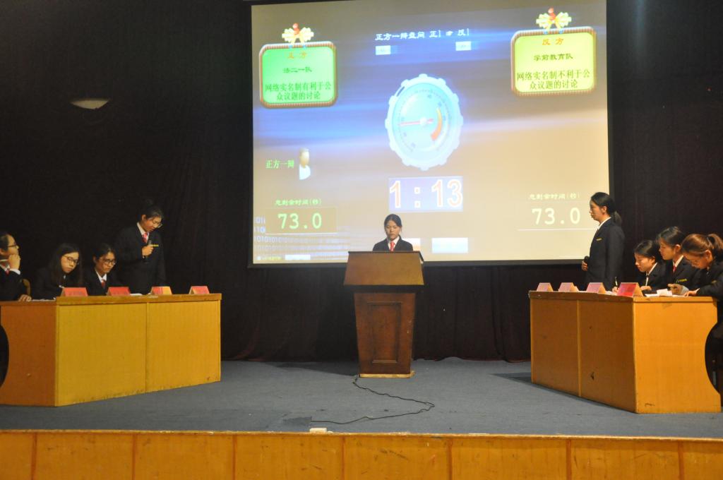 为了培养同学们辩论的热情,锻炼同学们的语言表达能力、思辨能力。太阳集团tyc539于11月15日晚上六点半在龙湖报告厅举办了新生辩论赛决赛。出席本次大赛的嘉宾有:太阳集团tyc539团委副书记张明奇老师,太阳集团tyc53918级辅导员张喜超老师、李玉杰老师,太阳集团tyc539第十七届主席团全体成员,会计学院员工会主席文静,校辩论队队长张冰、副队长穆金玉、副队长唐晓理、辩论队教练王龙威及太阳集团tyc53916级辩论队队长孙艳红。太阳集团tyc53918级全体员工到场观看。