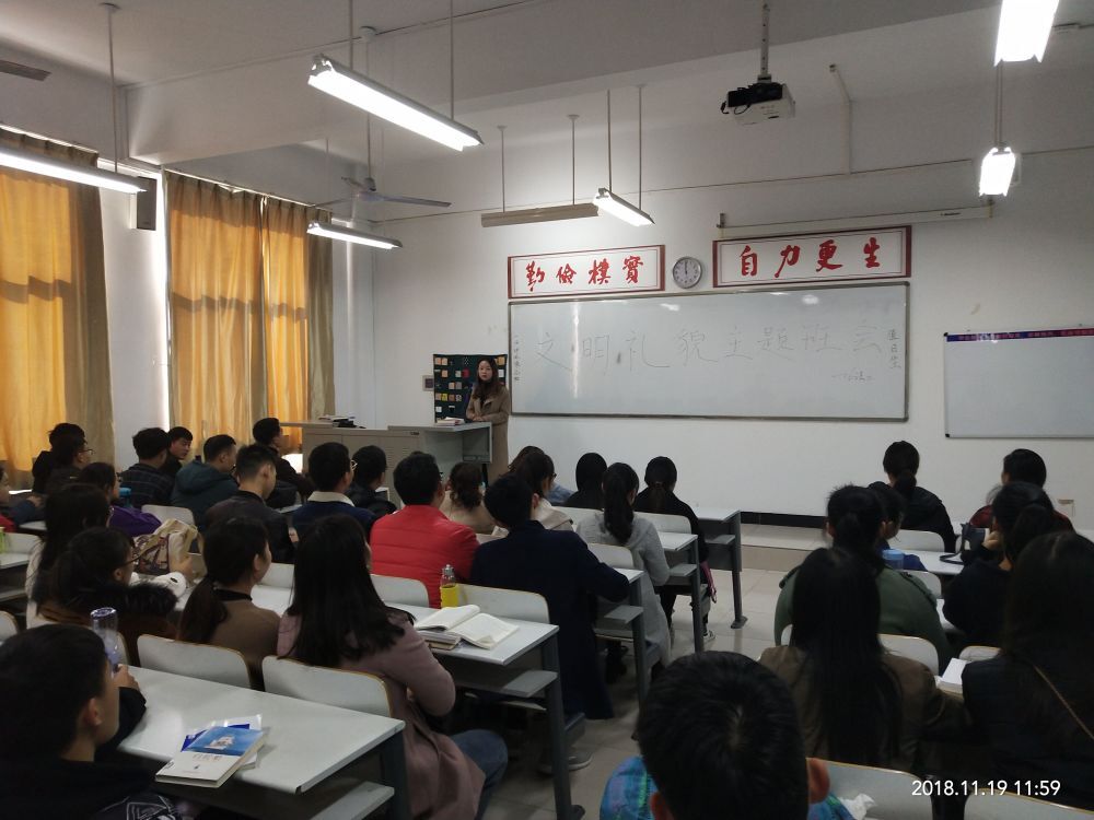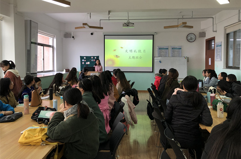 会上,各班班长带领大家认真学习《教育部、中央文明办关于深入开展文明校园创建活动的实施意见》(含《高校文明校园标准》)和《高等学校员工行为准则》等相关内容,希望大家身体力行,投入和谐文明校园的建设中。接着,班长带领大家以商量讨论的方式制定出班级的文明礼貌月活动方案,方案中倡议大家加强道德修养,规范言行举止,养成良好的文明习惯,树立良好的精神面貌,比如:垃圾入箱、不吸烟、不随地吐痰;遵守课堂纪律,不迟到、不早退、不旷课;排队买饭,文明就餐,珍惜粮食;不传谣,不信谣,不造谣等。针对活动开展情况,要求及时通过微博、微信、QQ群等新媒体方式传播给大家,向大家传扬文明礼貌行为,以自己或班级活动影响身边的朋友,最后评出文明礼貌月先进班集体、先进标兵并授予荣誉。