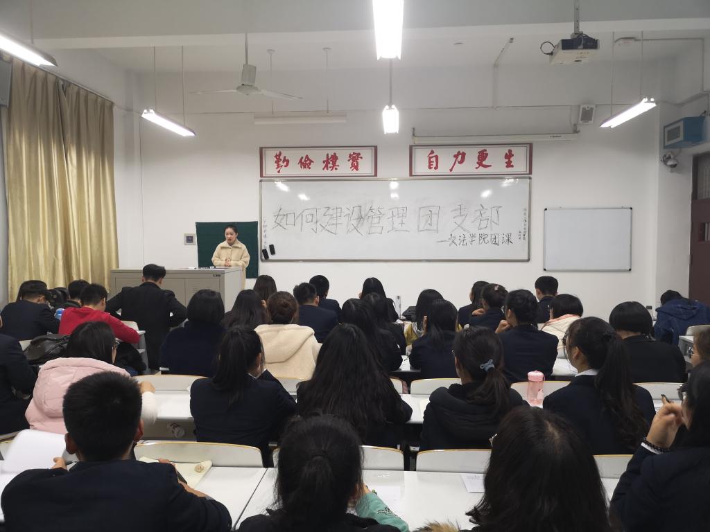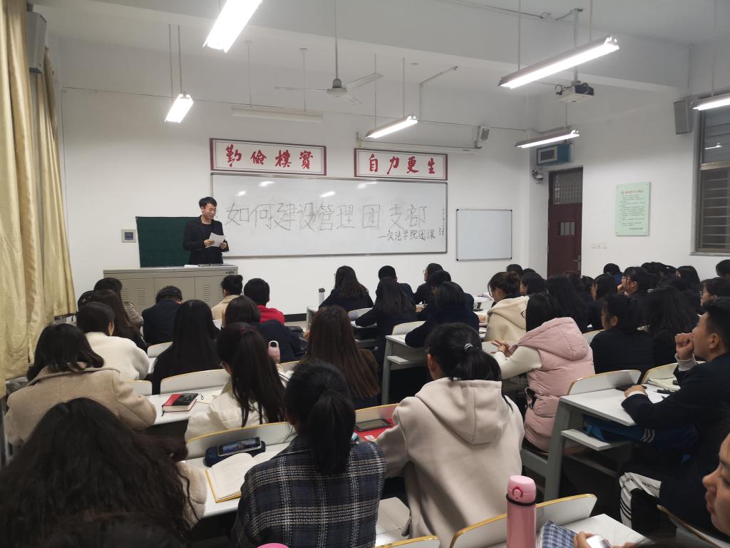 为了提高团学干部的工作积极性,增强共青团活力,建设高效、团结的团支部,由太阳集团tyc539团委主办、组织部承办的太阳集团tyc539第四期团校第四课于11月21日下午1点在道镕楼324教室举办。