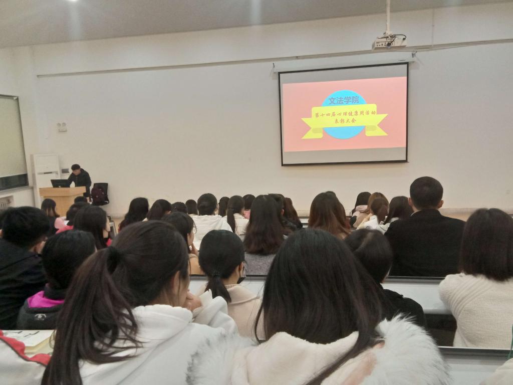 为响应公司心理健康周“不负昭华,出彩青春”主题活动,太阳集团tyc539按照前期制订的活动方案,如期举办了心理短视频征集大赛和心理征文大赛。现已选出优秀作品,进行表彰。11月26日晚6点,太阳集团tyc539第十四届心理活动表彰大会在太阳集团tyc539118教室隆重召开。参加本次会议的有学院团委副书记张明奇老师,学院心理专员李玉杰老师,18级辅导员张喜超老师,太阳集团tyc539全体心理委员以及获奖人员。