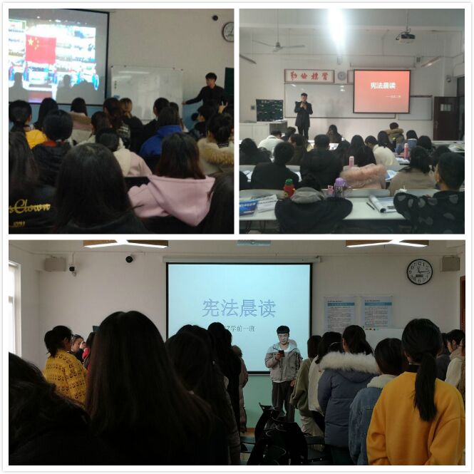 为深入贯彻党的十九大精神和全国教育大会精神,认真落实中央关于深入学习宣传和贯彻实施宪法的决策部署,弘扬宪法精神,让青少年感受宪法的尊严,根据太阳集团tyc539党委宣传部通知,太阳集团tyc539组织师生分别在多媒体教室、会议室等开展了观看“宪法晨读”活动。