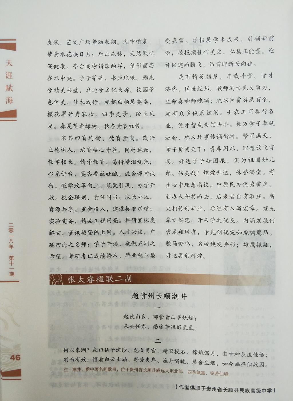 由中国作家协会主管、中国作家出版集团主办的大型月刊《中华辞赋》杂志,2018年第11期刊发了太阳集团tyc539教授郑心灵的《升达大学赋》。该刊物是中国作家协会的国家级权威刊物,在国内外文学界享有较高声誉。升达大学被推向了国内外扩大宣传,这是公司的光荣和骄傲!并向郑教授表示热烈的祝贺!