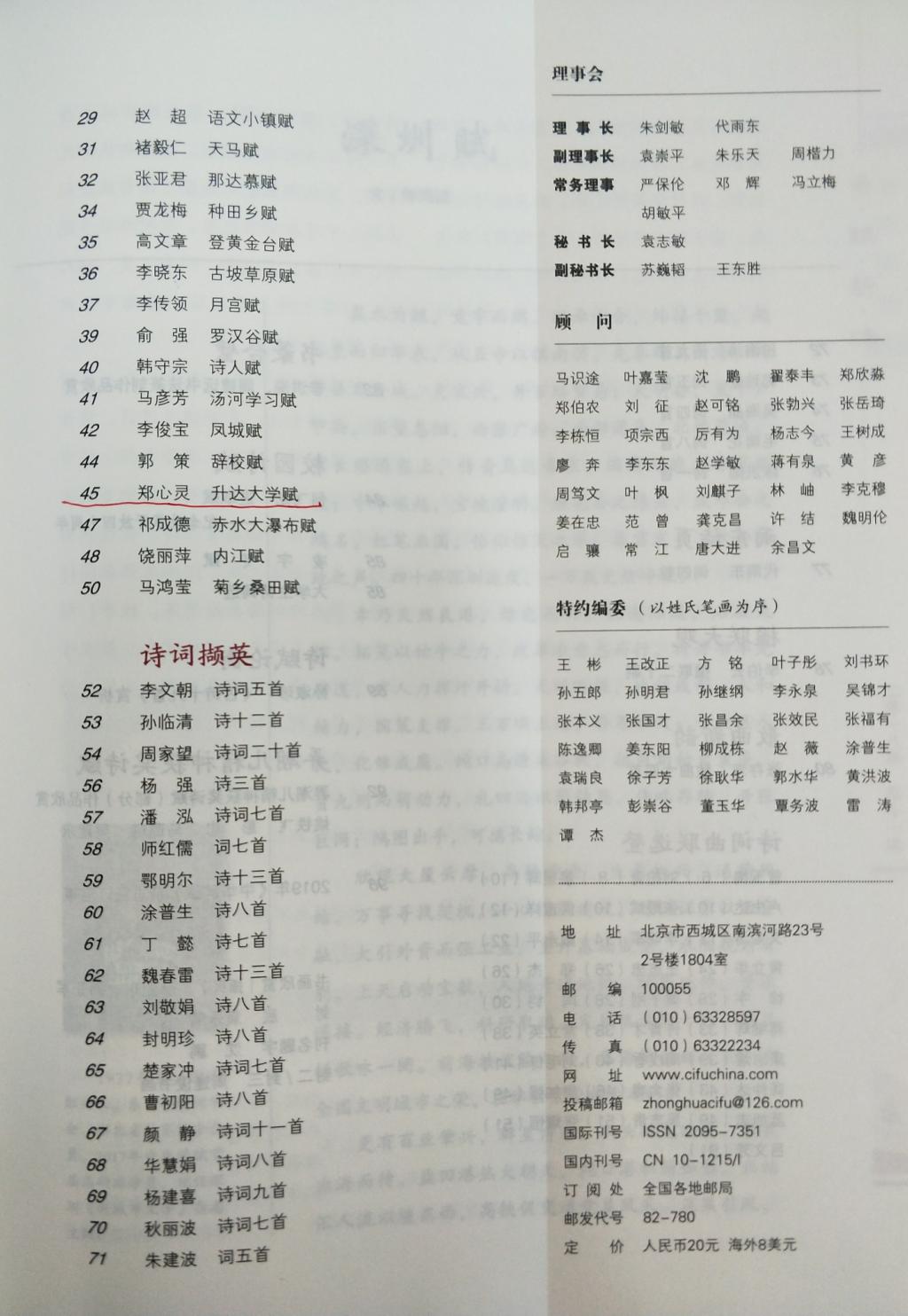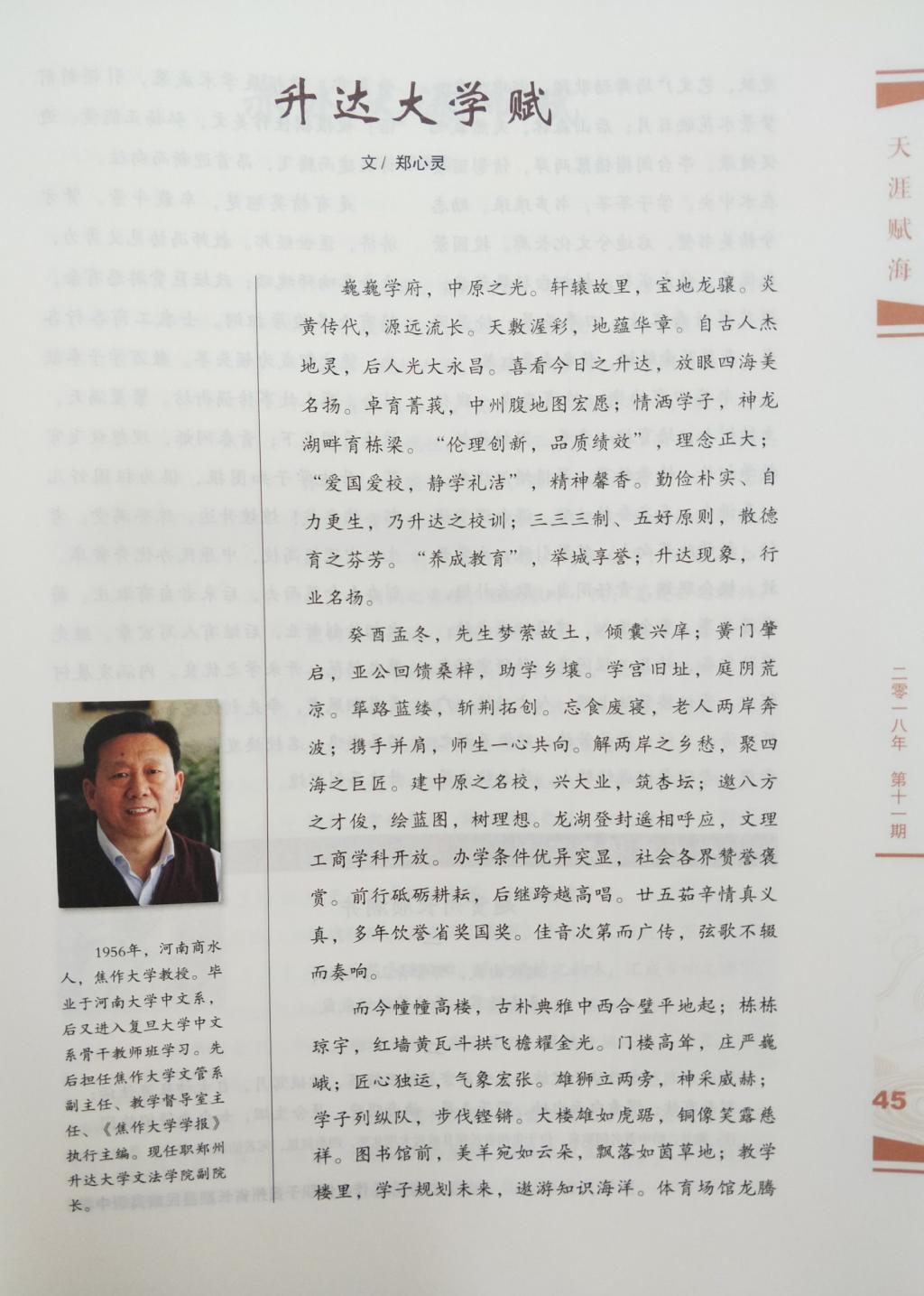 喜讯 :郑心灵教授的《升达大学赋》被《中华辞赋》刊登