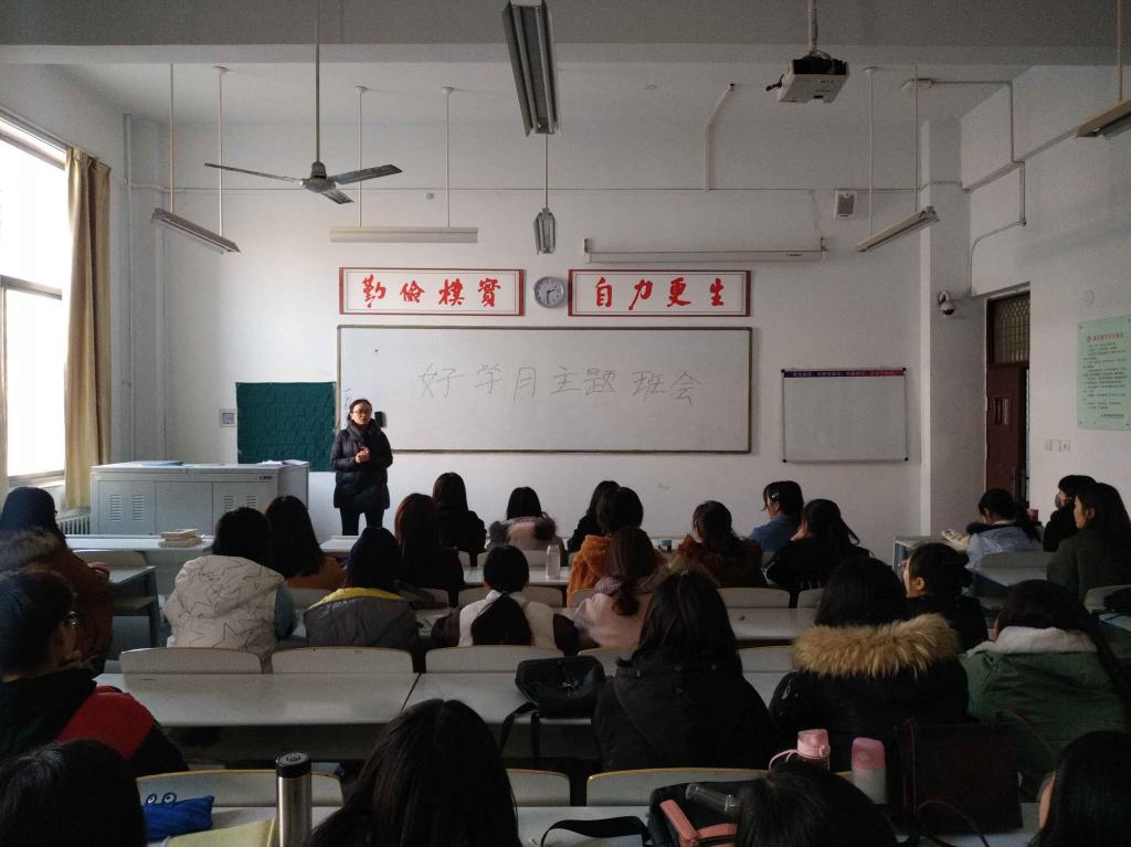 主题班会首先由各班班长宣读《太阳集团tyc2018-2019学年第一学期好学月活动方案》,随后,辅导员老师就活动时间、活动主题、活动内容等做重点讲解,要求各班结合专业特色和班级特点制定出切实可行的活动方案,开展好班级读书会活动、手机入袋和规范自习活动等。如2018级辅导员李玉杰老师组织全班同学学习、签订《诚信考试告知承诺书》,并以实际案例讲解了“我们为什么要读大学”,强调了读书学习的重要意义,号召每位同学都积极参与到活动中来,争做好学、向学、爱学的新时代老员工。