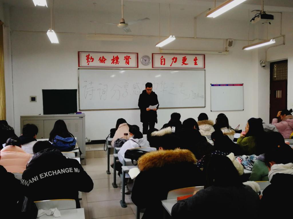 中华民族历史悠久,文化经典更是灿若星河,这些优秀的文化经典,凝聚了前贤的大智慧和睿语哲思,浓缩了华夏五千年的思想精粹,感染熏陶了一代又一代龙的传人。为响应学校好学月活动的号召,12月29日,17级法学专业员工举办了别开生面的“诗词鉴赏,感受中华之美”的诗词分享比赛活动。