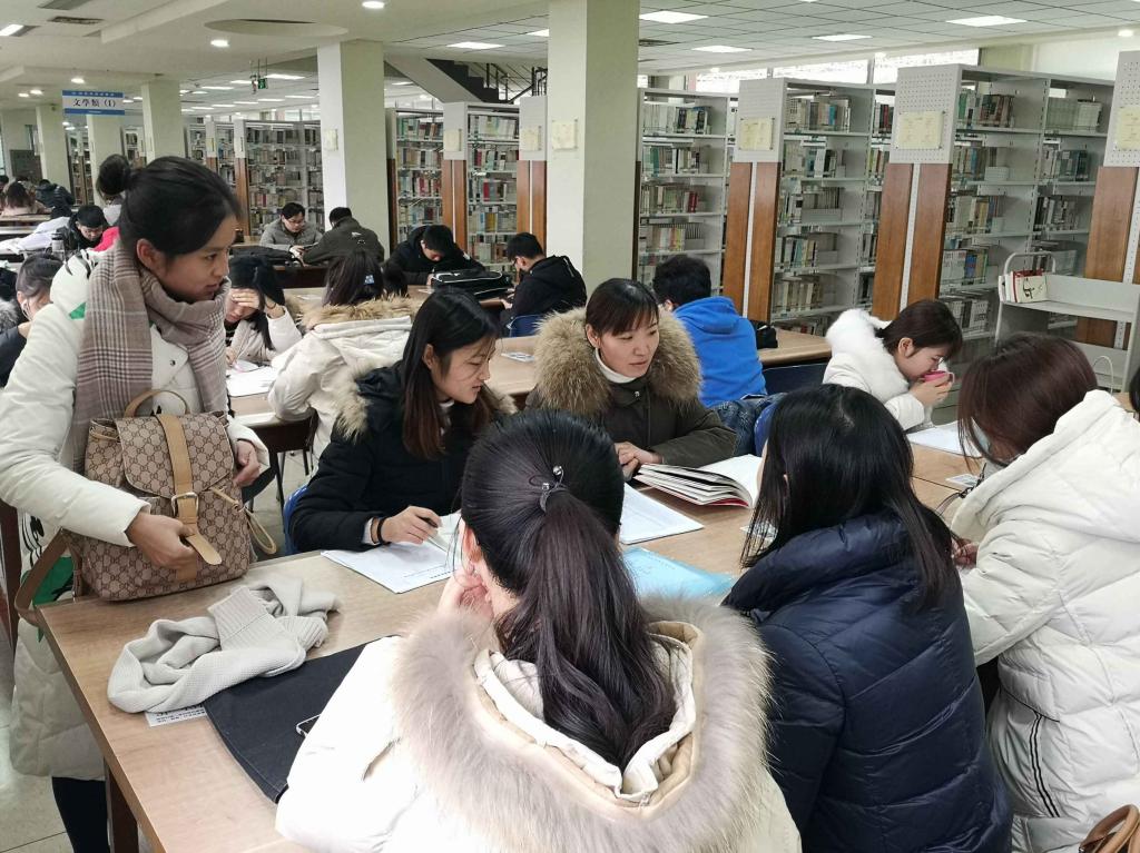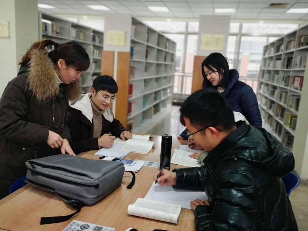 12月27日上午10点,在班委的组织下,同学们经过精心准备,来到图书馆进行资料搜集和教案编写。在两位老师的指导下,大家自由结合,以六个人为一组进行分组学习,通过讨论确定小组讲授课文篇目,随后各自查阅自己所需要的相关资料。在查阅书籍、资料时,同学们互帮互助,整理手稿,抄录批注,学习氛围浓厚。王敏凤老师和司慧慧老师巡视各小组学习情况和完成进度,及时、耐心帮助同学们解决问题,细心指出同学们在编写教案中的错误并讲解如何修改和完善。经过老师和同学们的共同努力,大家都出色地完成了教案的撰写任务。