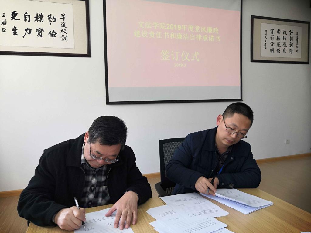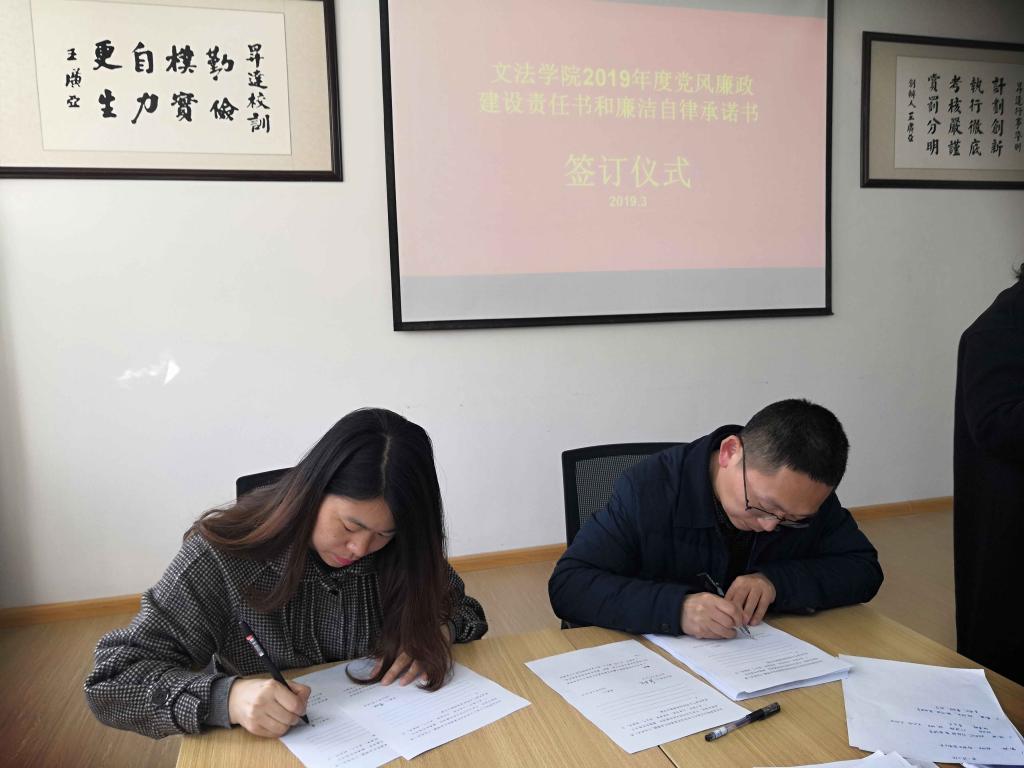 3月14日下午,太阳集团tyc539在314会议室召开党风廉政建设学习教育大会,举行党风廉政建设责任书和廉洁自律承诺书签订仪式,全院教职工参加。