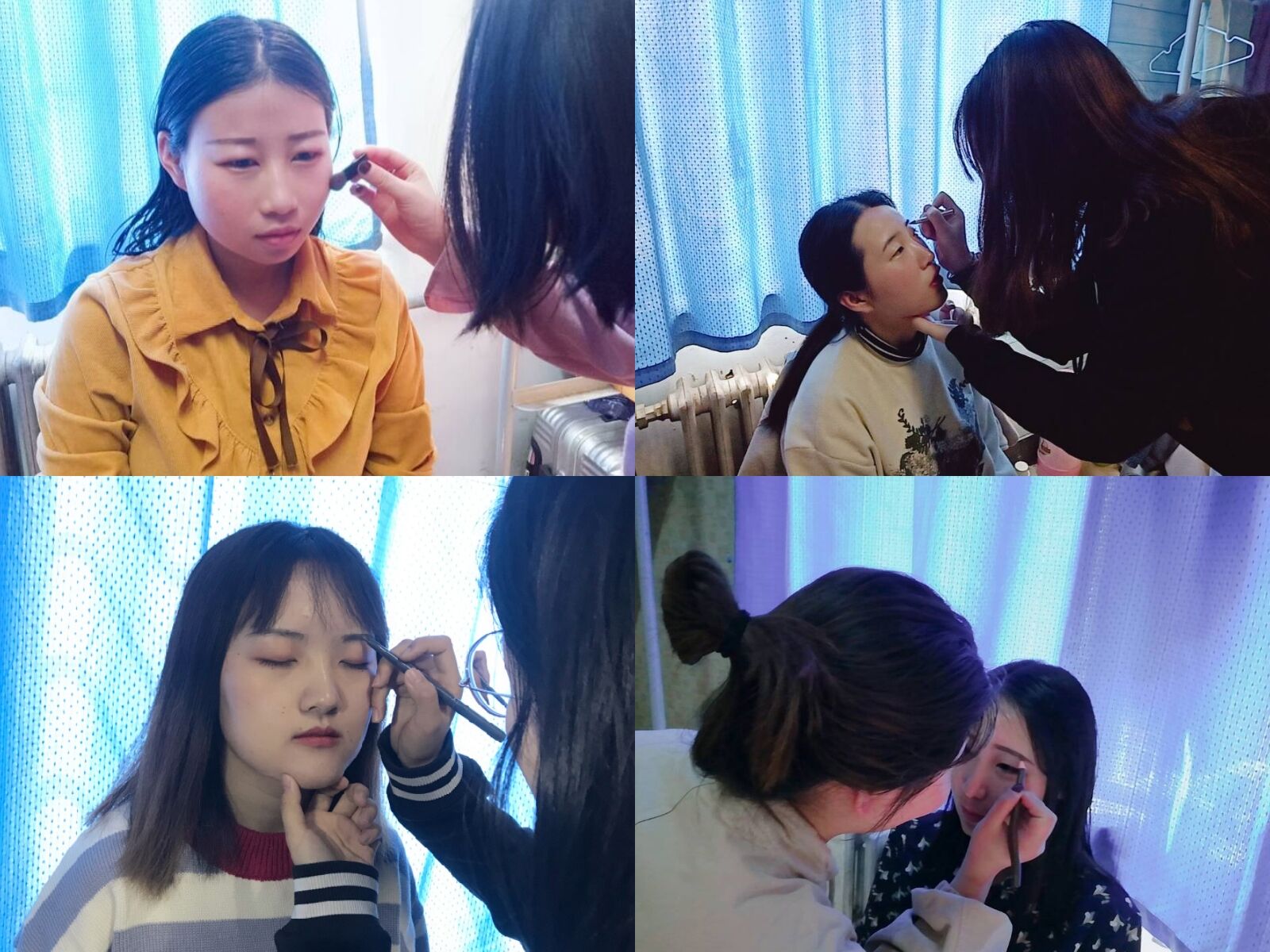 本学期新闻专业开设了主持人化妆与形象设计课程,鉴于班级部分员工对形象设计中化妆技术掌握并不熟练,班委们商讨决定利用周末晚自习的时间进行化妆课实践练习。本次活动由班长翟思凯组织班级同学开展,员工积极动手实操。此次活动以寝室为单位,两人一组进行化妆实践,同时拍照记录,交流讨论实践过程中的感想。