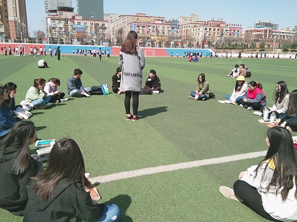 为响应学校好学月的号召,落实好学月活动要求,加强班级学风建设,17汉语言文学专业利用课余时间组织班级同学在足球场开展诗朗诵活动。