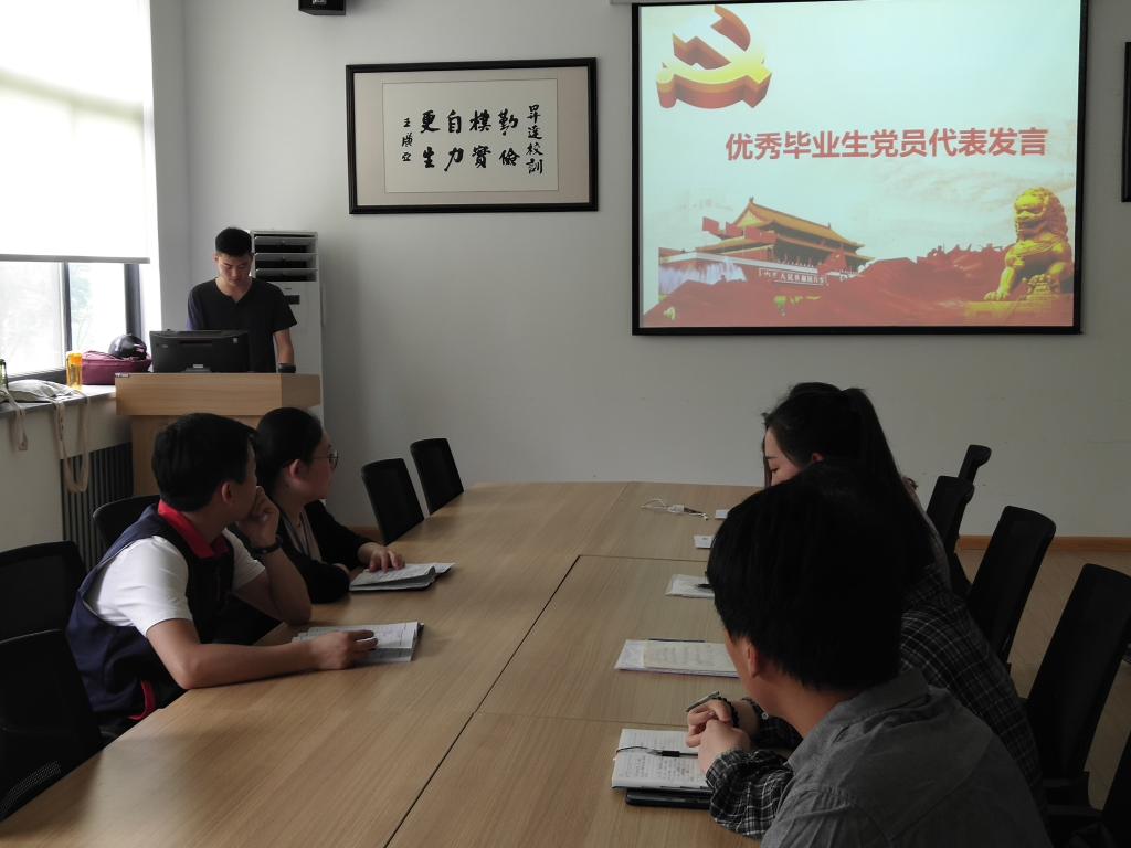 会议在奏唱国歌的仪式中开始,接着由优秀员工代表刘晨阳作为领誓人,带领党员同志面对鲜红的党旗,高举右拳,重温烙印在心中的入党誓词。之后,由优秀毕业生代表朱奎上台发言,他讲到要做到高标准要求自己,要始终保持对知识的渴望和对理想的追求。作为员工党员应做到当别人靠近你时感受你的善良,依靠和修养。活动最后,由太阳集团tyc539员工第一党支部书记刘建辉老师上台总结发言。刘建辉老师对即将毕业的员工党员对学校、学院、班级所做的贡献表示感谢。他讲到同学们要传承创办人的“三吃”精神,牢记党员身份,要记住全心全意为人民服务的宗旨,并告诫同学们无论在何时都要扩大自己的知识储备,不断更新,不断学习,跟上时代的发展。