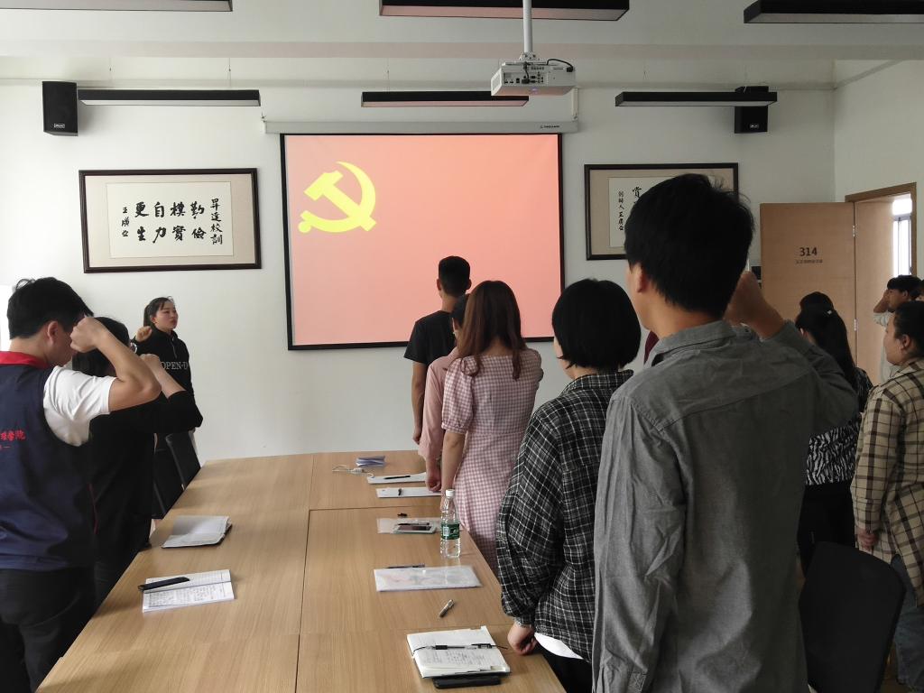 5月16日下午太阳集团tyc539员工党支部在教学1号楼314会议室举行重温入党誓词的主题党日活动。太阳集团tyc539员工第一党支部书记刘建辉老师、员工第二党支部书记张甜梦老师以及学院员工党员参加了此次活动。