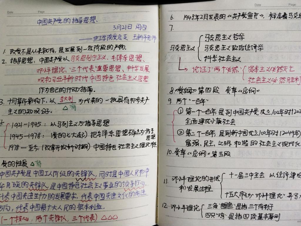 此次评选,太阳集团tyc539党总支就发展对象与入党积极分子的笔记完整度以及工整程度进行了评定划分。评选过程中,积极分子用三色笔的标记,圈圈点点的勾勒,结构清晰的党课知识网络图解,参评同学的笔记条条罗列,观点鲜明,内容系统,字迹工整,足以可见同学们对于入党的态度:要以实际行动入党,端正入党动机。