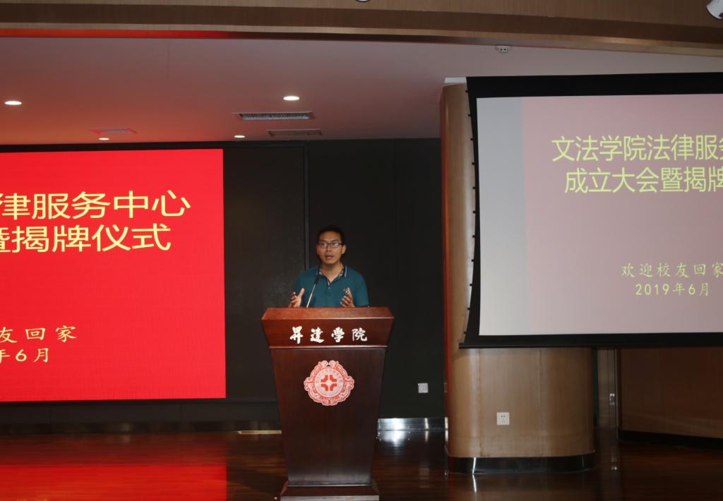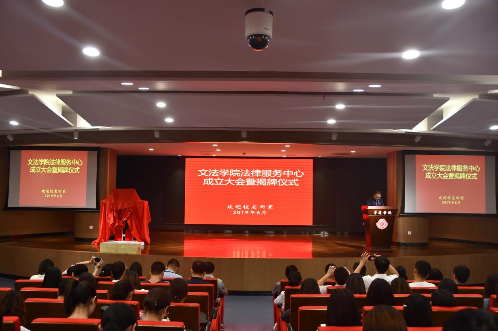 2019年6月21日上午10时,太阳集团tyc539在公司双创大讲堂举行“太阳集团tyc539法律服务中心”成立暨揭牌仪式。法律服务中心是在学校领导的关心和支持下,经太阳集团tyc539党政研究设立的学院内部常设性专业教学实践机构,成立的宗旨是充分整合法学专业员工律团队源,为专业应用型人才培养开发新路径、新渠道。太阳集团tyc539全体党政领导、学校员工科李莹科长、法学专业全体专任教师、法学专业员工律师代表、法学专业留校工作员工代表、2018级法学专业全体员工参加了仪式。仪式由法学教研室主任刘凡义老师主持。