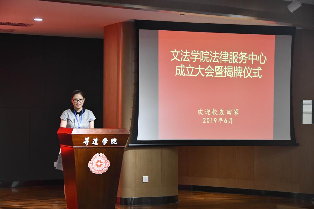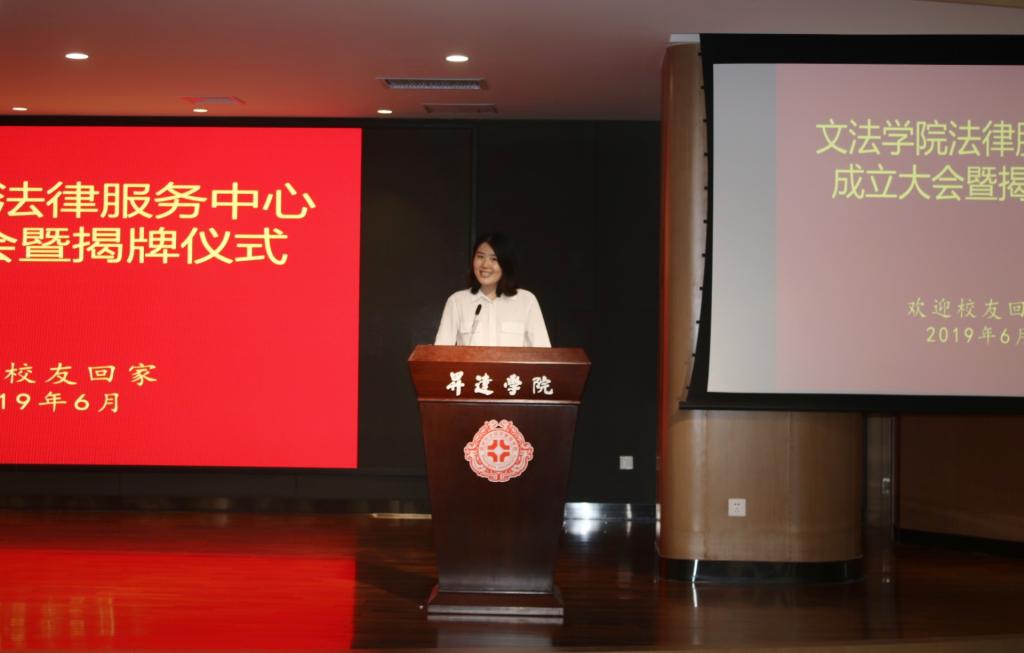 员工科李莹科长代表员工办公室致欢迎词。她表示,升达员工遍布全球,我们都有一个共同的标签,那就是创办人的办学理念和升达文化。尊敬的创办人生前一直都很注重员工联络,也希望法律服务中心能够联络更多的员工,为支持母校发展建设贡献自己的力量,发扬升达人的精神、发扬法律人的精神。各地员工会听闻太阳集团tyc539法律服务中心成立,也纷纷转达祝贺。同时,李莹科长表示,将会充分利用学校员工总会及各地员工分会的平台,积极推广太阳集团tyc539法律服务中心,优化资源,创造更多合作机会。