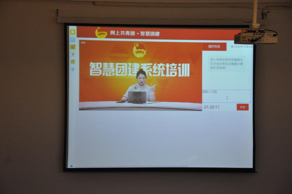 全体与会人员共同观看团中央“智慧团建”系统线上专题培训会直播,学习“智慧团建”系统运行及毕业团员团组织关系转接相关功能及任务。培训员首先对培训毕业班团支部标记问题和团关系转接步骤流程进行了讲解,并在讲解过程中穿插了多次线上问答环节,接着培训员公布了“智慧团建”各学校和机关单位的评分标准。与会师生认真聆听并不时做笔记,会后大家对前期“智慧团建”中遇到的问题和今天培训中学到的知识点进行了交流与讨论,学习气氛热烈。