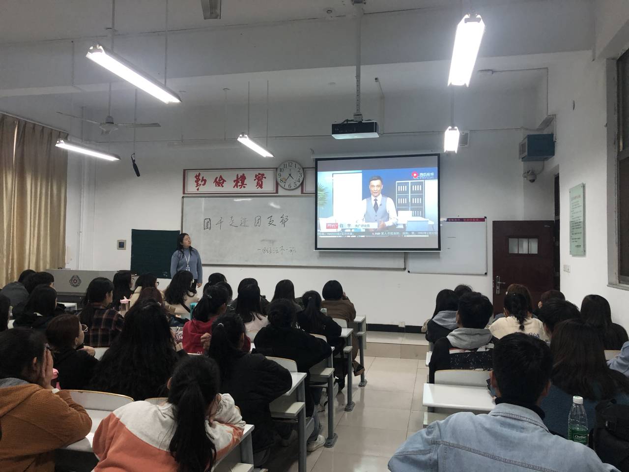 首先李玉杰老师为同学们播放一段视频——“河北40名老员工被退学”。视频中河北40名老员工因为长期旷课被退学。教育部表示,员工对自己不负责任,就要付出代价。结合视频内容李老师向大家强调了以下几点:读书虽苦,但却是人生最容易走的路;你所厌倦的学习环境,是别人无法触及的梦想;作为青年人应当树立正确的人生目标,要有吃苦在前,享乐在后的精神,担负起这个新时代应有的责任与担当;懂得父母的苦,别抱怨学习的苦,那是你看世界的路。最后,李玉杰老师希望同学们能够引以为戒,珍惜在大学校园的美好时光,充分利用在学校的学习资源。