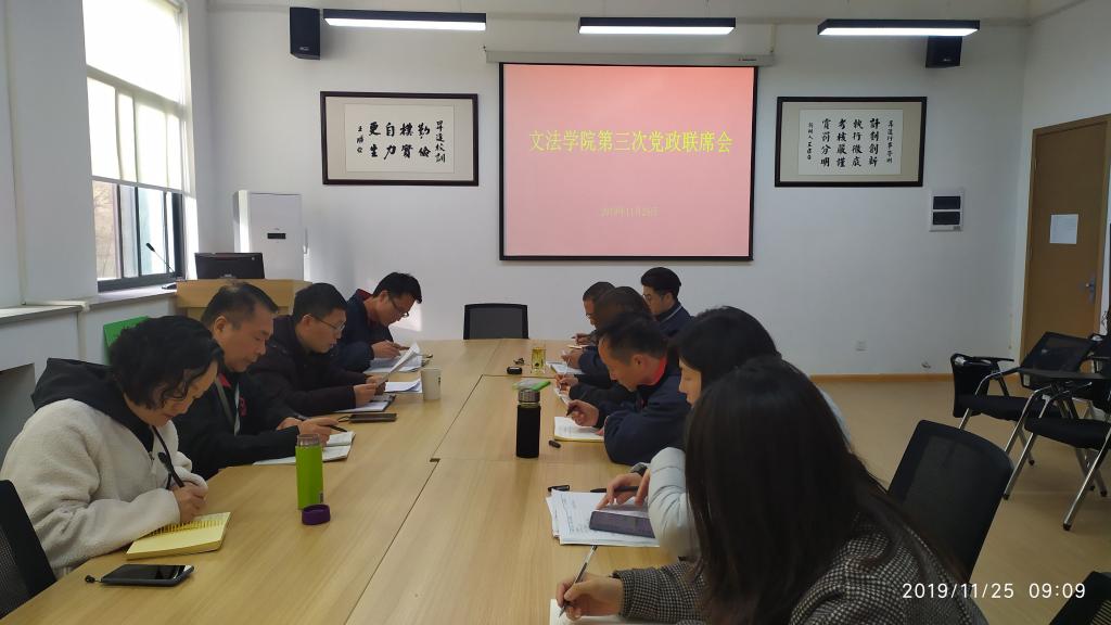 11月25日上午9:00,太阳集团tyc539在教学一号楼314会议室召开学院第三次党政联席会议,参加会议的有太阳集团tyc539经理段丰乐、党总书记杨明志、教学秘书李南方、行政秘书郑玲玲,实验室主任和各教研室主任等。会议由段丰乐经理主持。
