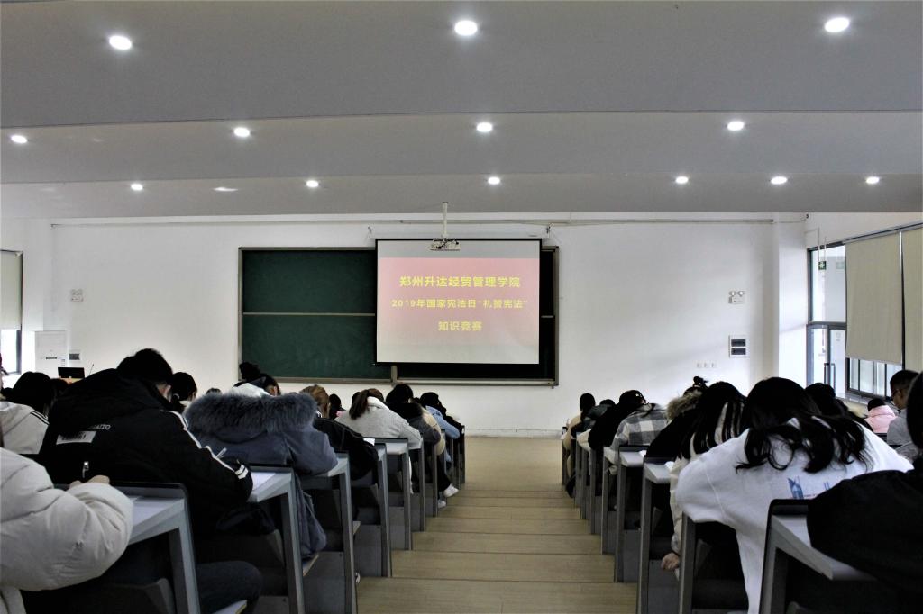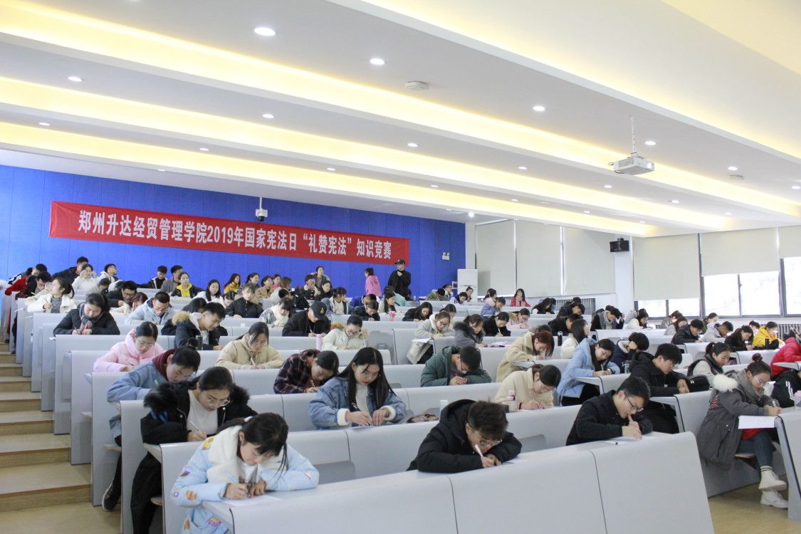 公司法制办动员全校各学院积极组织宪法知识初赛,各院初赛形式不一,同学们广泛学习宪法相关知识,为取得优异成绩积极准备,本次比赛在同学中间掀起了一股学宪法的热潮。每院最终选出10名优秀员工参加学校决赛。最终,来自全校各学院共计110名员工于12月2日中午12:40在教学楼一号楼118教室参加了此次决赛竞赛。竞赛采用闭卷考试的方式,竞赛内容涉及《宪法》相关内容,目的在于提高同学们学法、知法、懂法、守法、护法的法律素养,让员工懂得宪法是神圣不可侵犯的。竞赛开始前,同学们按照老师安排有序入座,竞赛中,同学们奋笔疾书,书写着对宪法知识的认识。